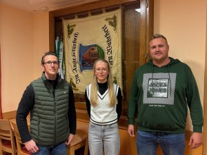 Foto v.l.n.r.: Holger Kremer (1. Schießwart), Amelie Mai, Mario Führs (2. Schießwart)