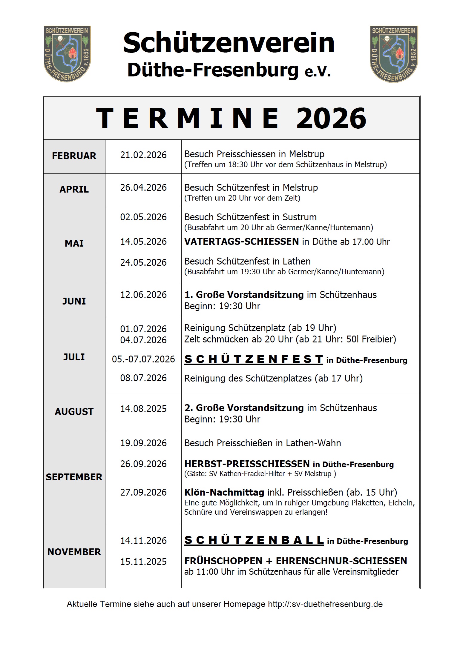 15.11.2026 Ehrenschnurschießen im Schützenhaus in Düthe ab 11 Uhr